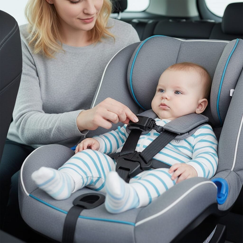 - No Bulky Coats: Puffy winter coats create a large gap between the baby and the harness. In a crash, the coat can compress, leaving the harness dangerously loose. Buckle the baby in without their coat, then place a blanket or the coat over them on top of the harness.