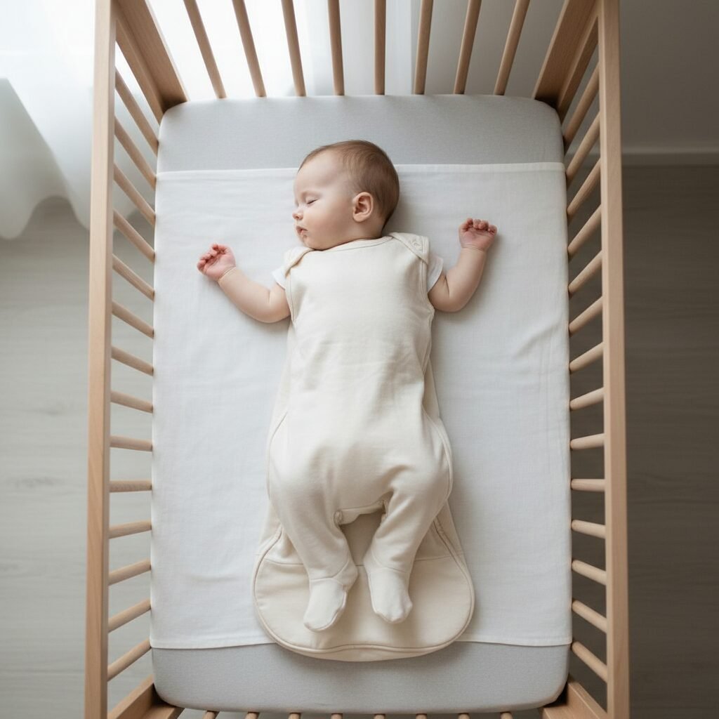 A firm, flat sleep surface with only a fitted sheet is all your baby needs. To keep them warm, skip the loose blankets and use a wearable blanket, like a sleep sack, instead. It provides warmth without the risk.