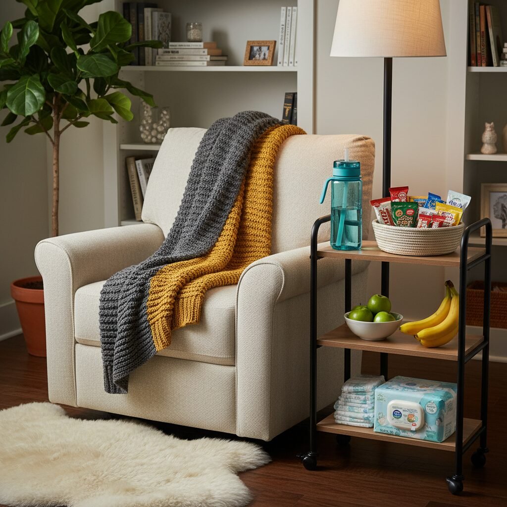 This is your personal refueling hub, strategically placed wherever you spend the most time feeding or soothing your baby—be it the nursery rocking chair, the corner of the sofa, or your bedside table. The goal is to have everything you need within arm’s reach.