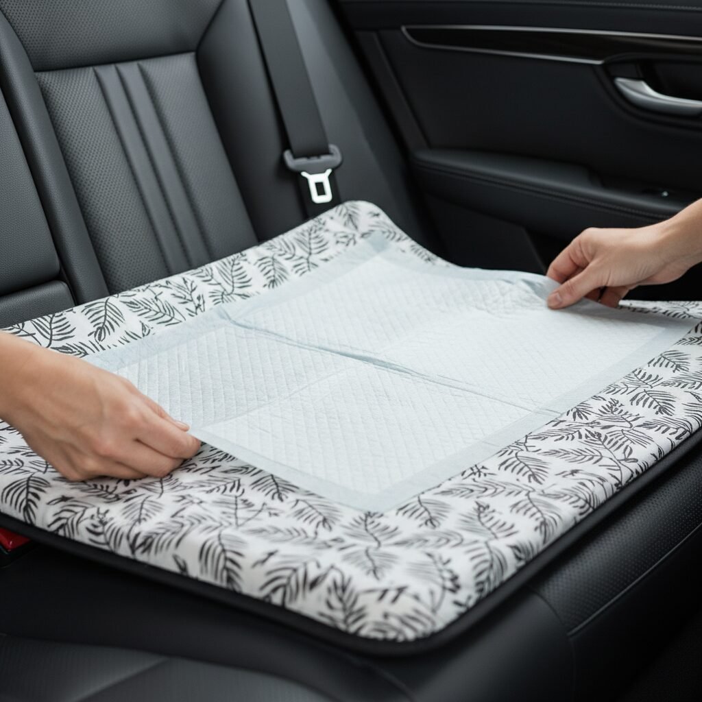 - Lay down your foundation: Put your regular, reusable waterproof changing mat down first. This is your primary barrier to protect your car’s interior.