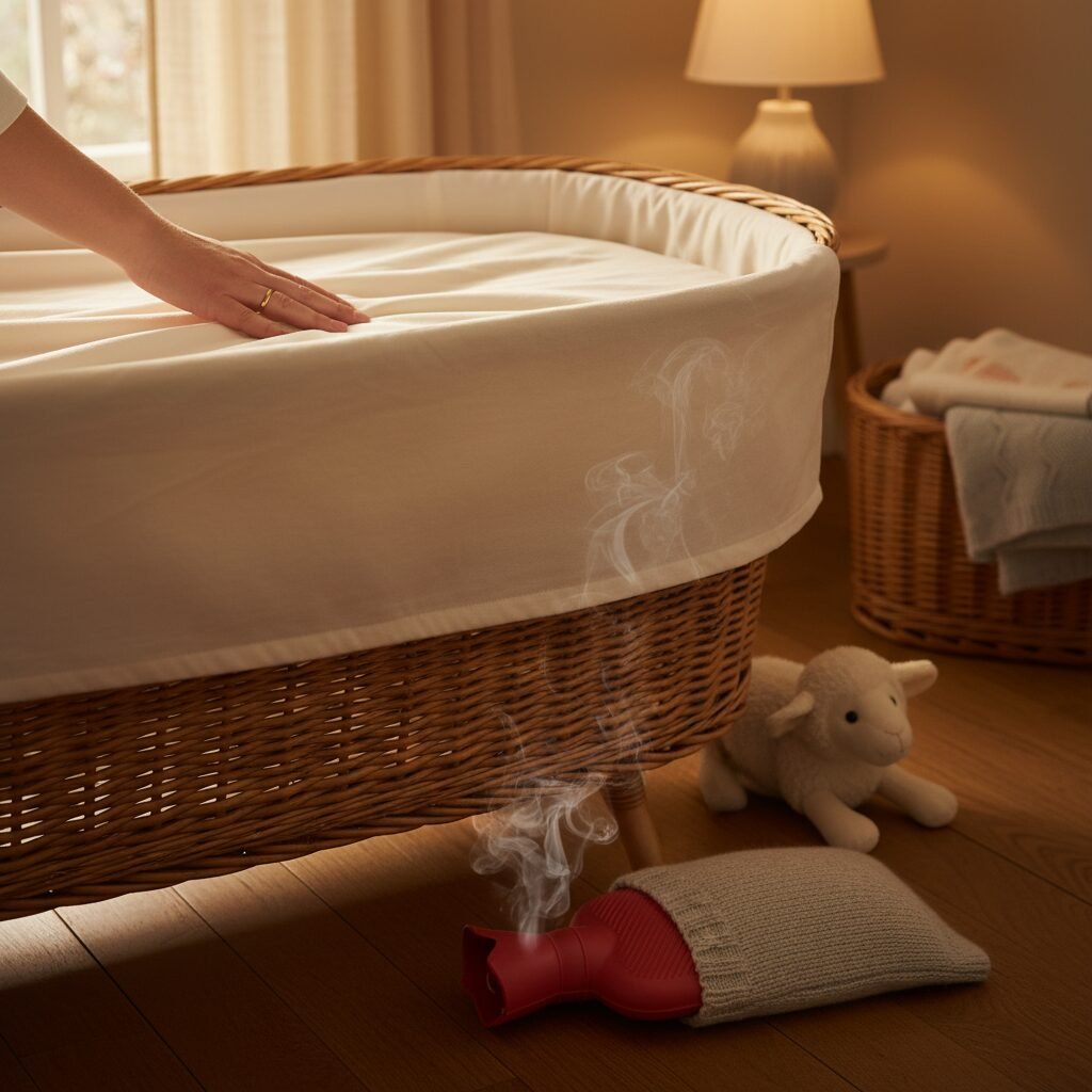 The ‘Warm Spot’ trick is a wonderfully simple hack to ease this transition. The goal is to make the bassinet surface less of a shock to their system by safely pre-warming it.