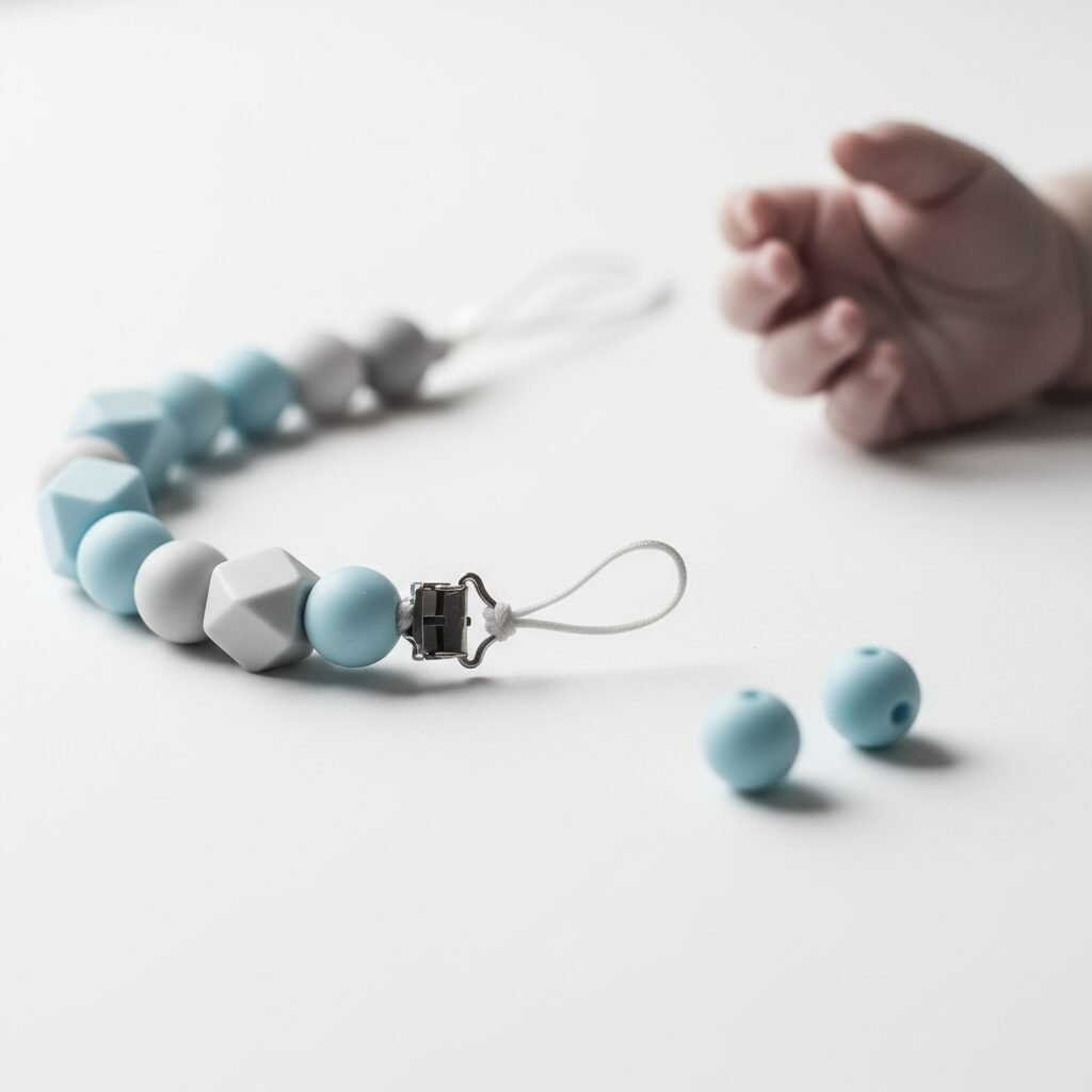 • Beaded Clips: These are often made from silicone, wood, or plastic beads strung on a cord. If the cord breaks or a baby’s strong gums (or first teeth!) manage to damage it, those individual beads become immediate choking hazards. A baby’s airway is incredibly small—about the diameter of a drinking straw—and a single bead is more than large enough to block it.