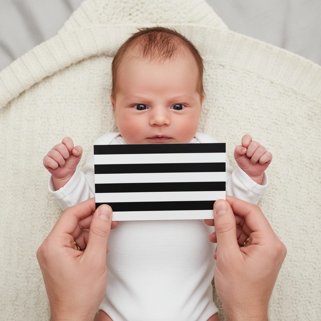 - High-Contrast is King: Because their color vision is still developing, babies see the world in shades of black, white, and gray at first. This is why they are so drawn to bold, high-contrast patterns. The sharp difference between dark and light is easy for their developing eyes to process and helps stimulate visual development.