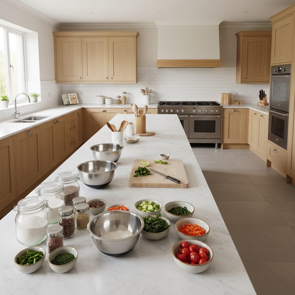 - Get Your Tools Ready: Lay out your cutting board, knives, mixing bowls, and utensils. Make sure everything is within easy reach of your primary workspace.