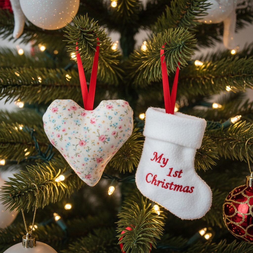 - Ideas to Try: Cut out simple shapes like stars or hearts from the fabric, lightly stuff them with cotton, and sew them shut with a loop of ribbon for hanging. You can also trace a cookie cutter for a perfect shape! Another lovely idea is to use a small embroidery hoop to frame a cute graphic from a onesie.