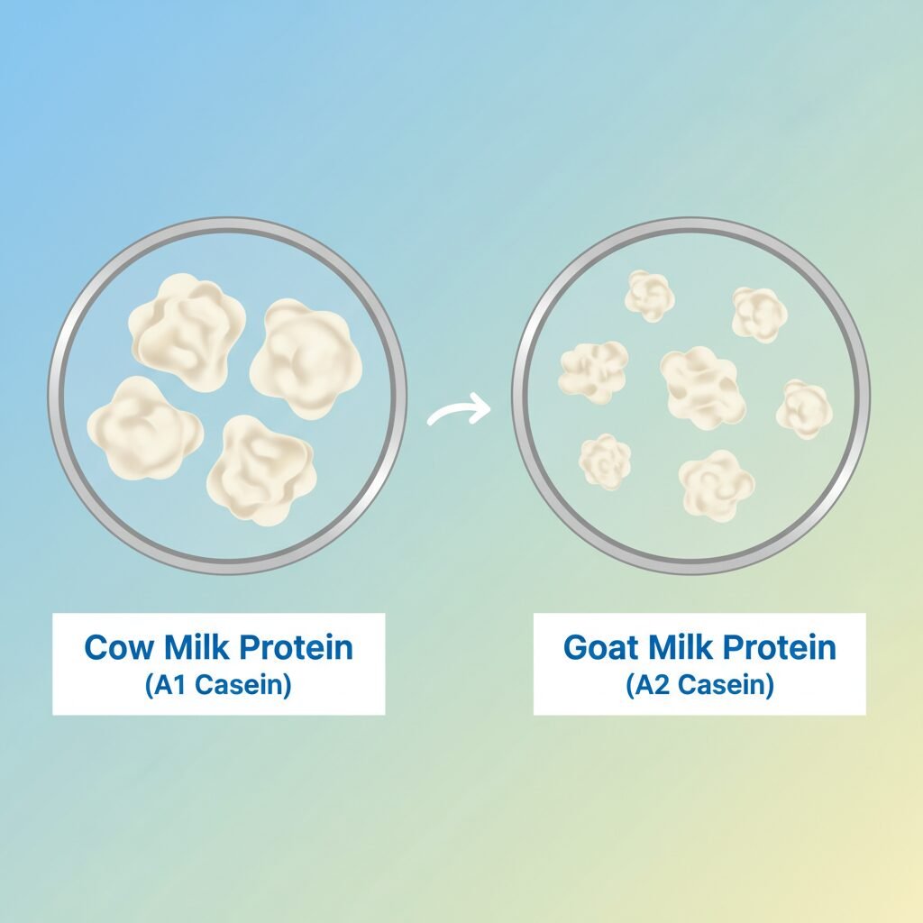 - Goat’s Milk Formula: Naturally contains almost exclusively A2 beta-casein. This is structurally more similar to the protein found in human breast milk. It forms smaller, softer, and more delicate curds in the tummy, which are generally easier for a baby’s developing digestive system to handle.