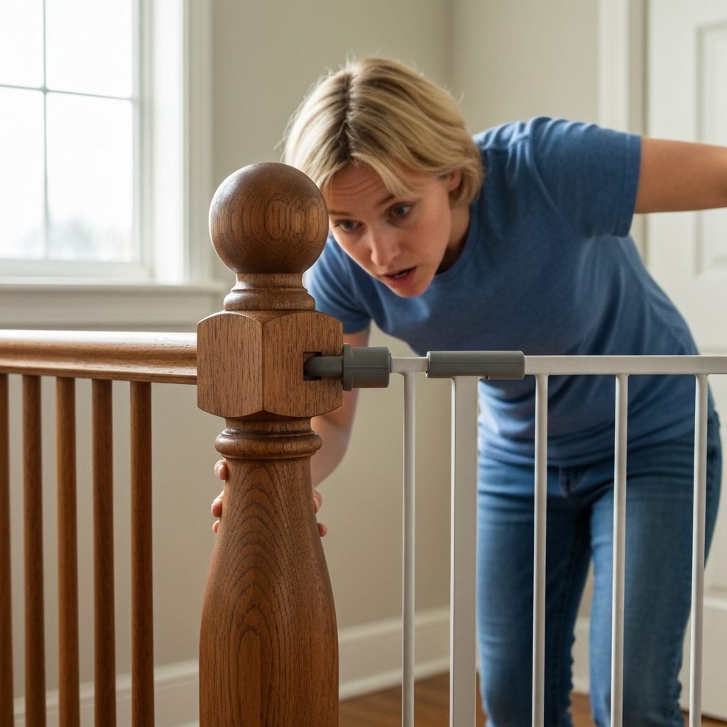 - Pressure-Mounted Gates: These work by creating tension between two surfaces. When one of those surfaces is a round or tapered banister post (also called a newel post), the small, flat pressure pads on the gate can’t get a secure grip. They can easily slip, slide, or be pushed out of place by a determined toddler. This is a major safety hazard.