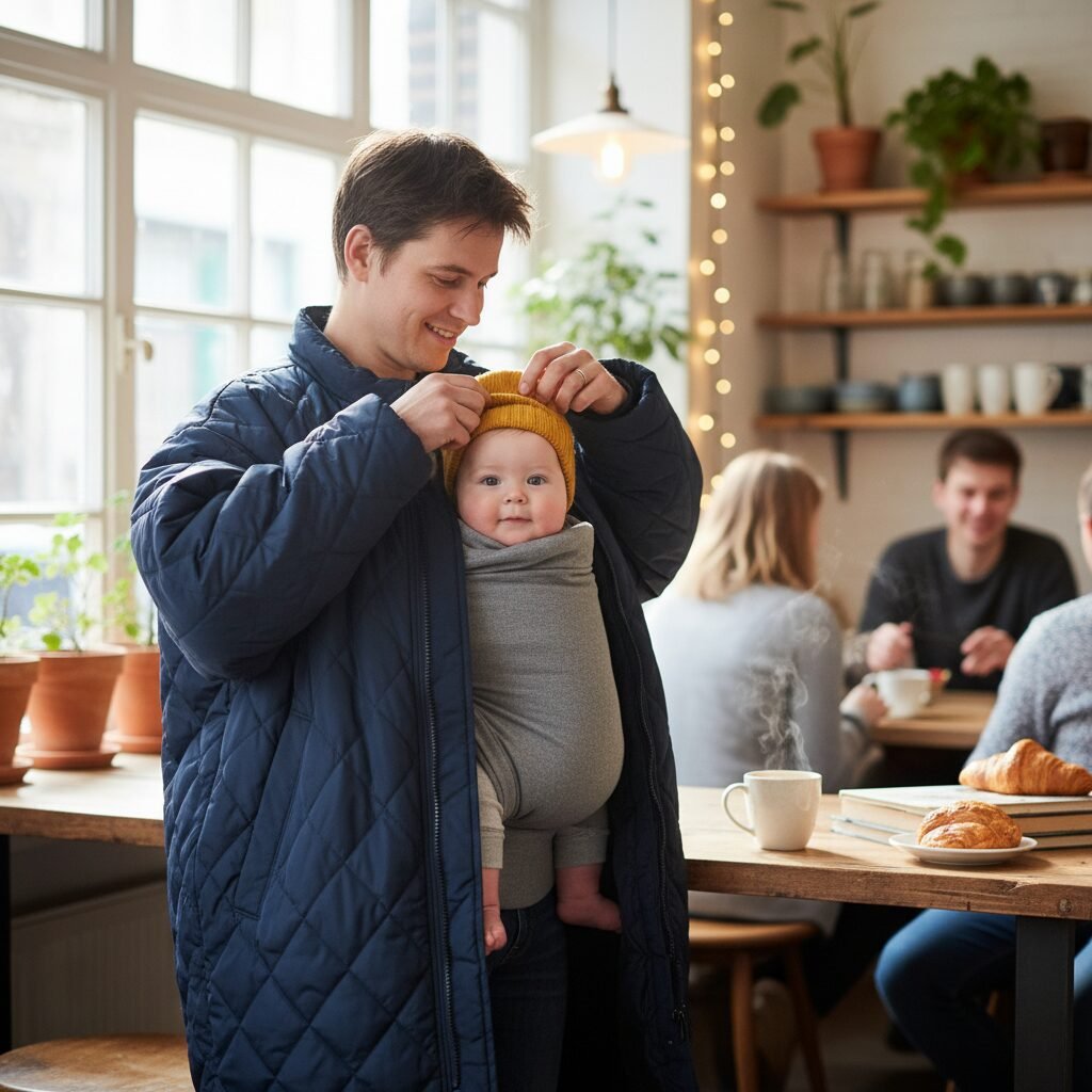 - Outer Layer: This is where things get creative. You can wear a maternity coat or a coat that’s a size or two too big to zip up around both of you. Better yet, consider a babywearing coat or a jacket extender panel. These are designed to zip into your existing jacket, creating a perfect pouch for your baby. This cocoons you both in a shared space, making it much easier to regulate the overall temperature.