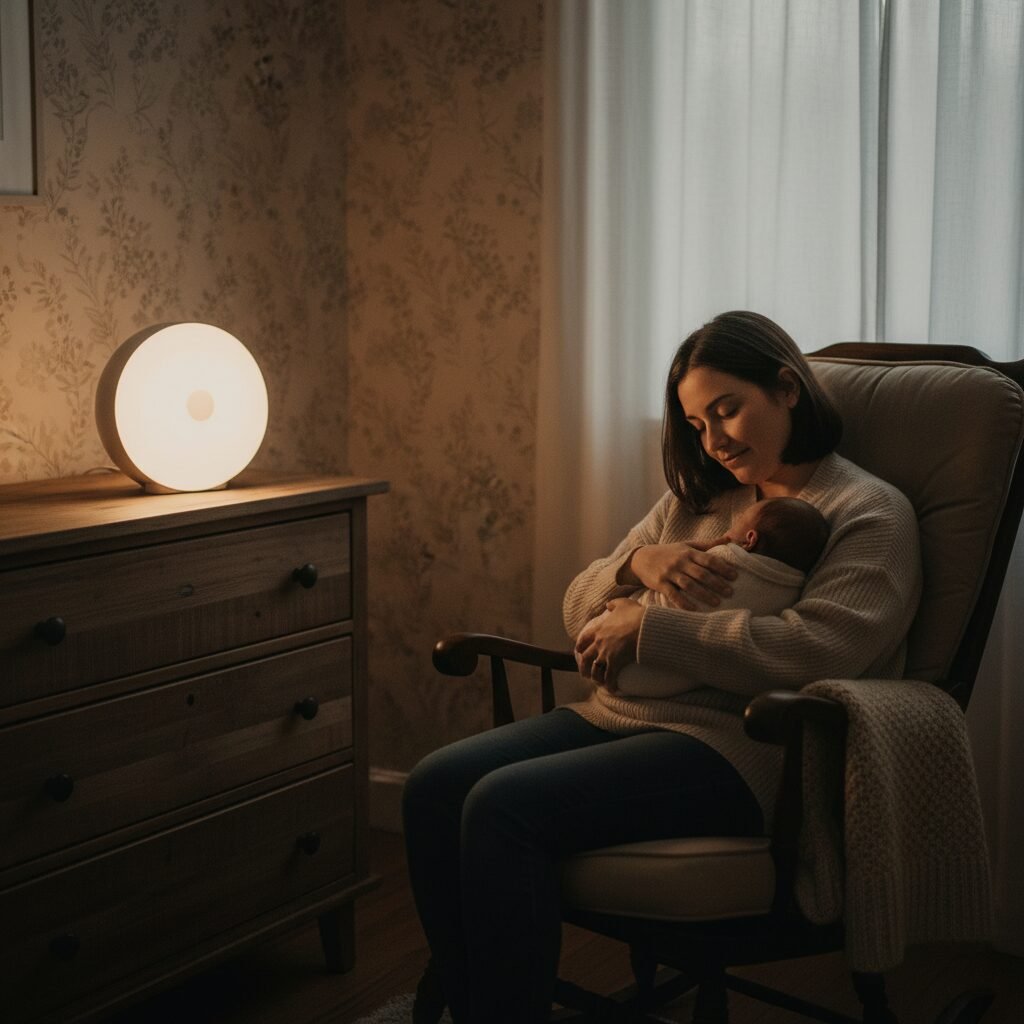 - Create a Calm ‘Home Base’: Make your home, especially the nursery, a low-stimulation zone with soft lighting, calm colors, and minimal background noise.