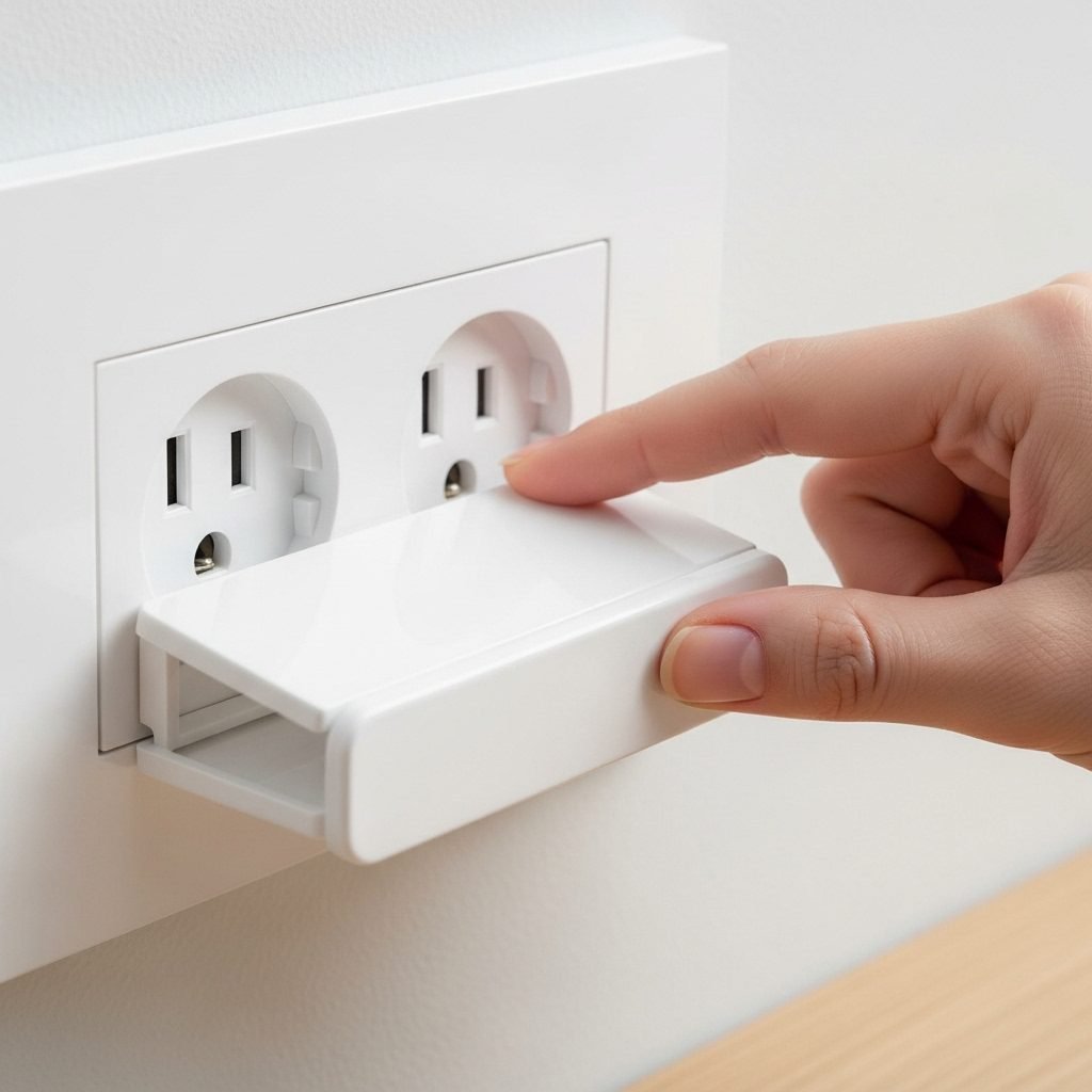 • Sliding Outlet Covers: These are fantastic! You replace the entire outlet plate with one that has a spring-loaded shutter. To plug something in, you have to slide the cover and push the prongs in simultaneously. When you unplug, it automatically snaps back into a safe, closed position. No small parts to lose or choke on!