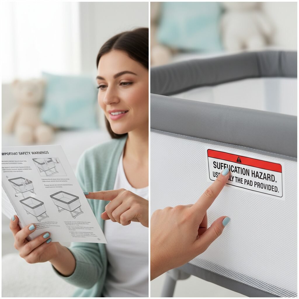 - Check the Product Tags: Look for a warning label directly on the bassinet itself. These labels are required by law and will often state the sleep guidelines clearly.