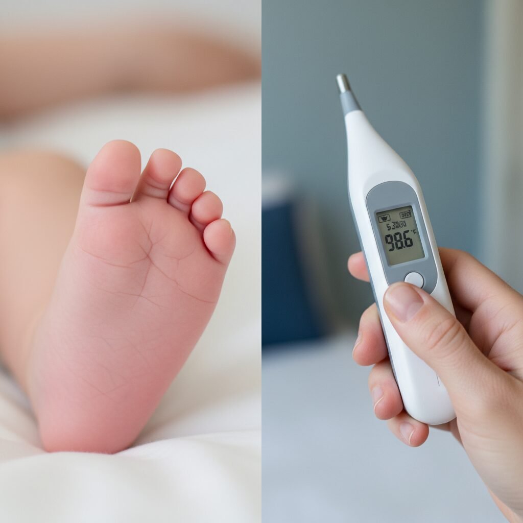 - Feeling Cold: The baby’s skin (especially their trunk) feels cold to the touch, even though they are in a warm room and dressed appropriately.