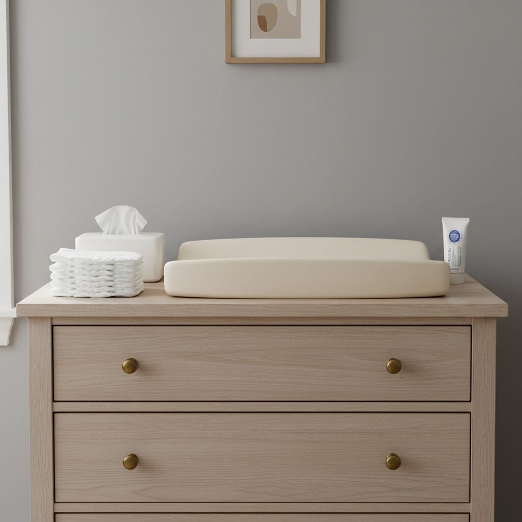 - A Changing Pad: A simple, wipeable contour changing pad is perfect. You can place it on top of a dresser or on the floor. Get 2-3 washable covers for it.
