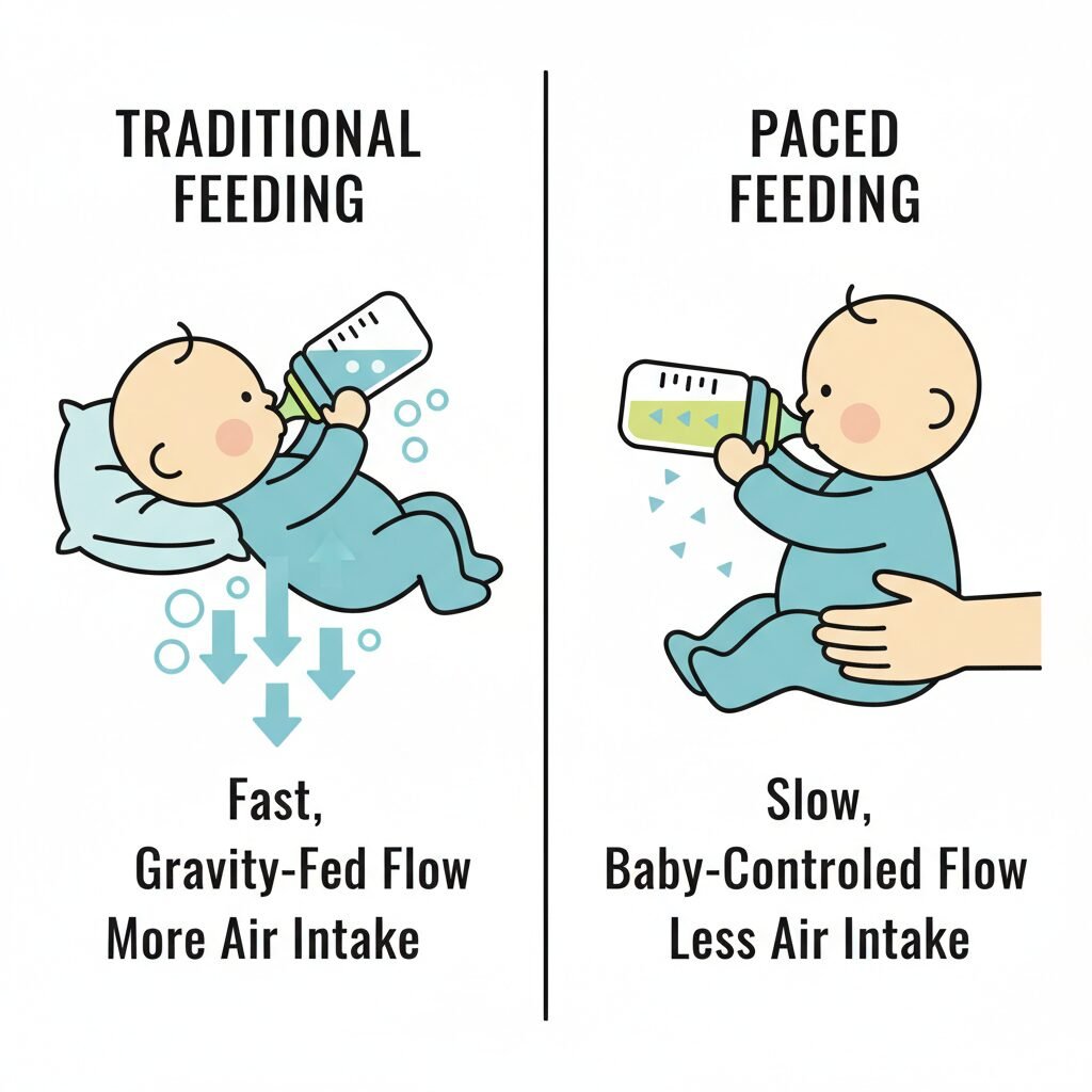 Traditional bottle feeding can sometimes be more like a one-way street. When you tilt a bottle upside down, gravity takes over, and milk flows out whether the baby is actively sucking or not. To keep up, a baby might gulp quickly, swallowing a lot of air in the process. This can lead to a whole host of uncomfortable issues. Paced feeding flips the script by putting control back where it belongs: with your baby.