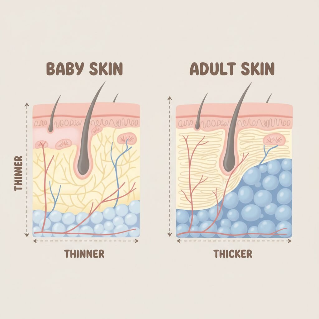 • The Skin Barrier is Immature: A healthy skin barrier (or ‘acid mantle’) is crucial for keeping moisture in and irritants out. In newborns, this barrier is still developing and is more permeable, making it prone to dryness and irritation.