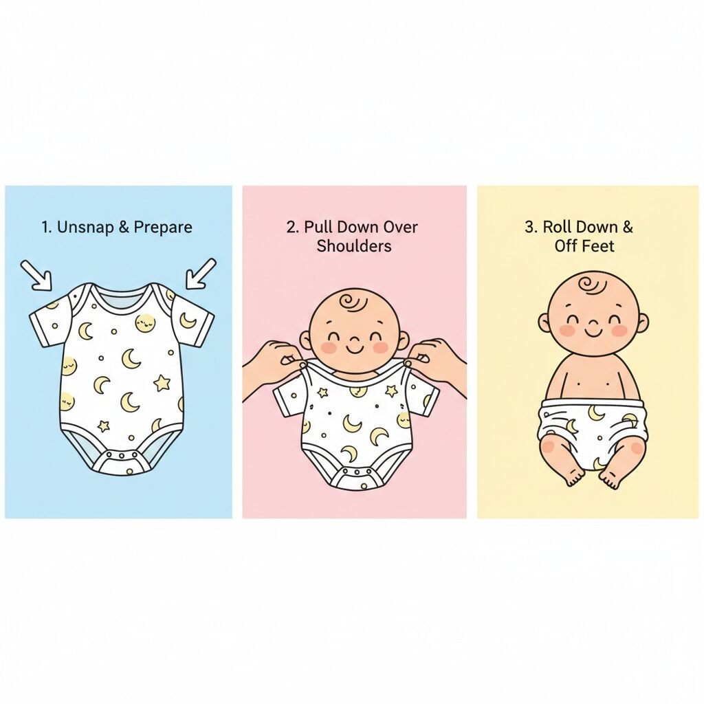 - Unsnap the crotch of the soiled onesie.
