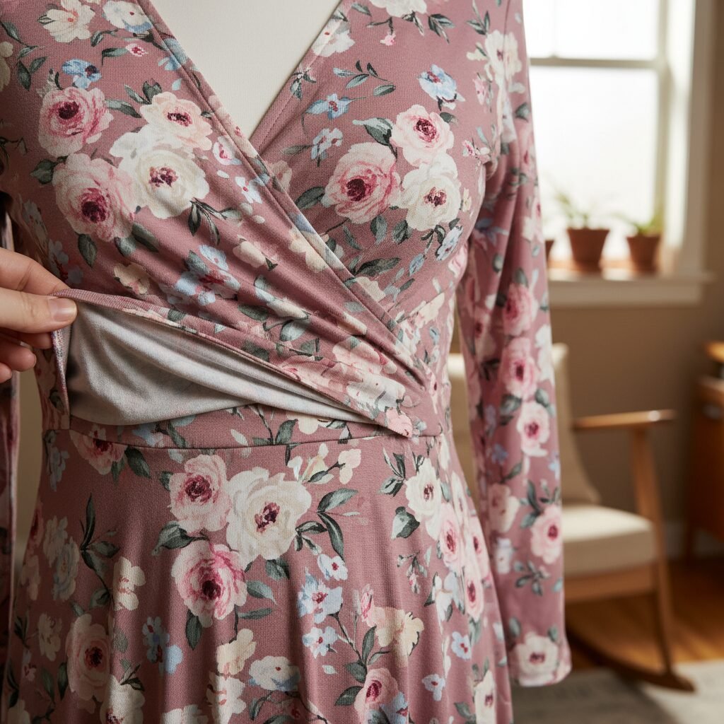 • Wrap or Faux-Wrap Dresses: This style is the holy grail of nursing fashion. The crossover front can be untied or pulled aside in seconds, offering quick and easy access. Plus, the adjustable waist is incredibly forgiving on a postpartum figure.