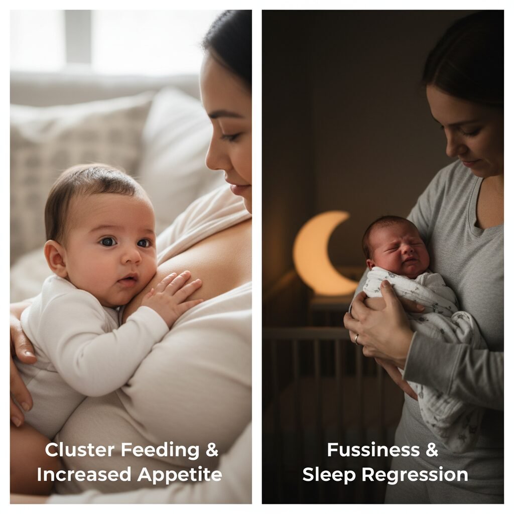 This is often the most noticeable sign. Your baby, who might have been eating every 2-3 hours, suddenly wants to nurse or take a bottle constantly, sometimes with only a few minutes in between. This is called cluster feeding. It can feel like all you’re doing is feeding the baby. For breastfeeding moms, this is your baby expertly placing their order for a bigger milk supply. For formula-feeding families, you might notice your baby still seems hungry after finishing their usual bottle.