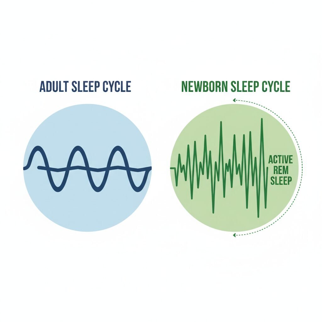 Unlike adults, newborns have very short sleep cycles, lasting only about 45-60 minutes. They also spend about half their sleep time in REM (Rapid Eye Movement) sleep, which is a much lighter, more active state. This is why you might see them twitch, smile, or grunt in their sleep! This design is brilliant for survival—it allows them to wake easily if they are hungry, cold, or need comfort.