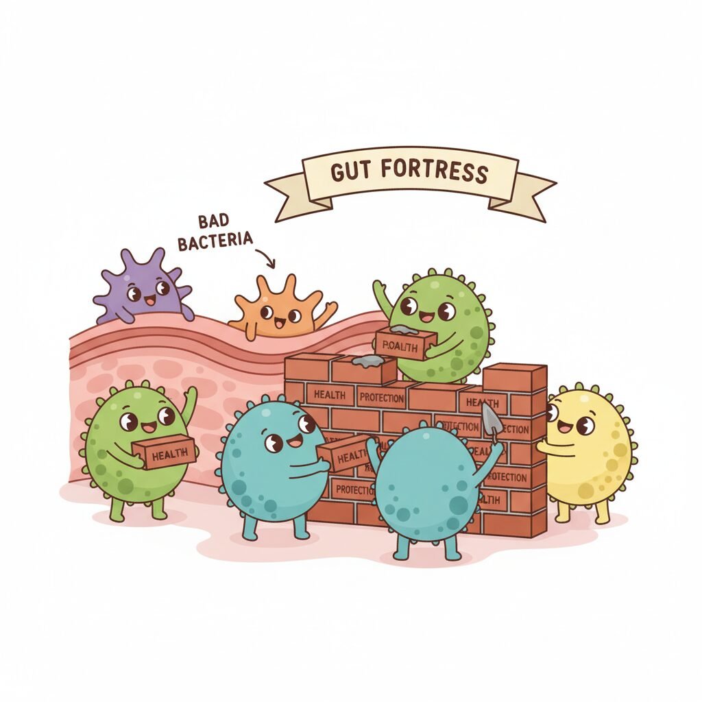 - They strengthen the gut wall: Probiotics help patch up the ‘mortar’ in the gut lining, making it less leaky and preventing inflammatory substances from escaping into the bloodstream.