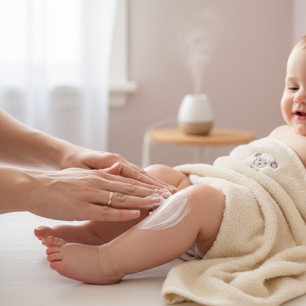 - Moisturize, Moisturize, Moisturize: This is non-negotiable. Use a thick, fragrance-free cream or ointment (not a thin lotion) and apply it liberally all over your baby’s body at least twice a day, especially right after a bath.