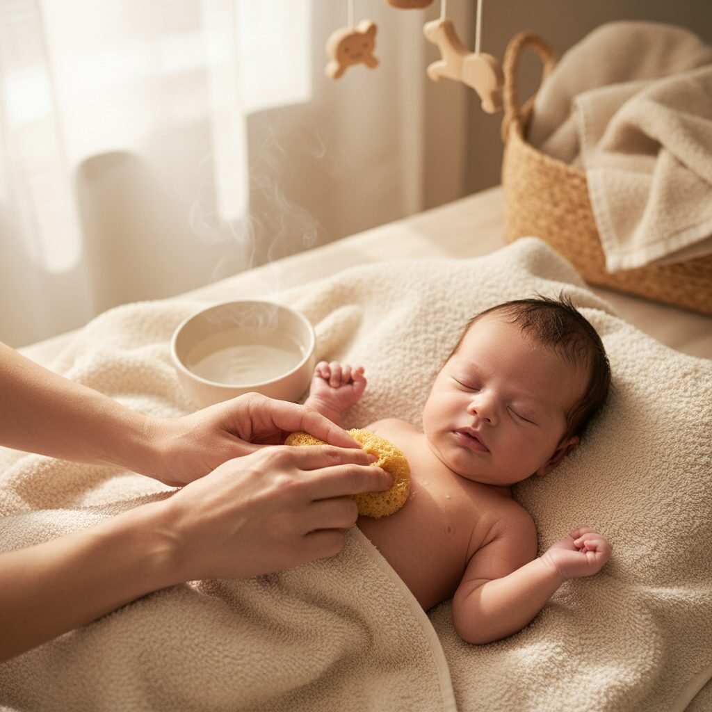 - Sponge Baths Only: Use a warm, damp washcloth to clean your baby’s body, avoiding the penis.